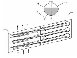 1、 熱管 2、套管 3、下降管 4、汽包 5、上升管